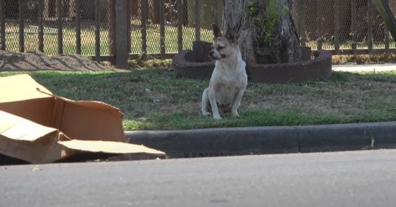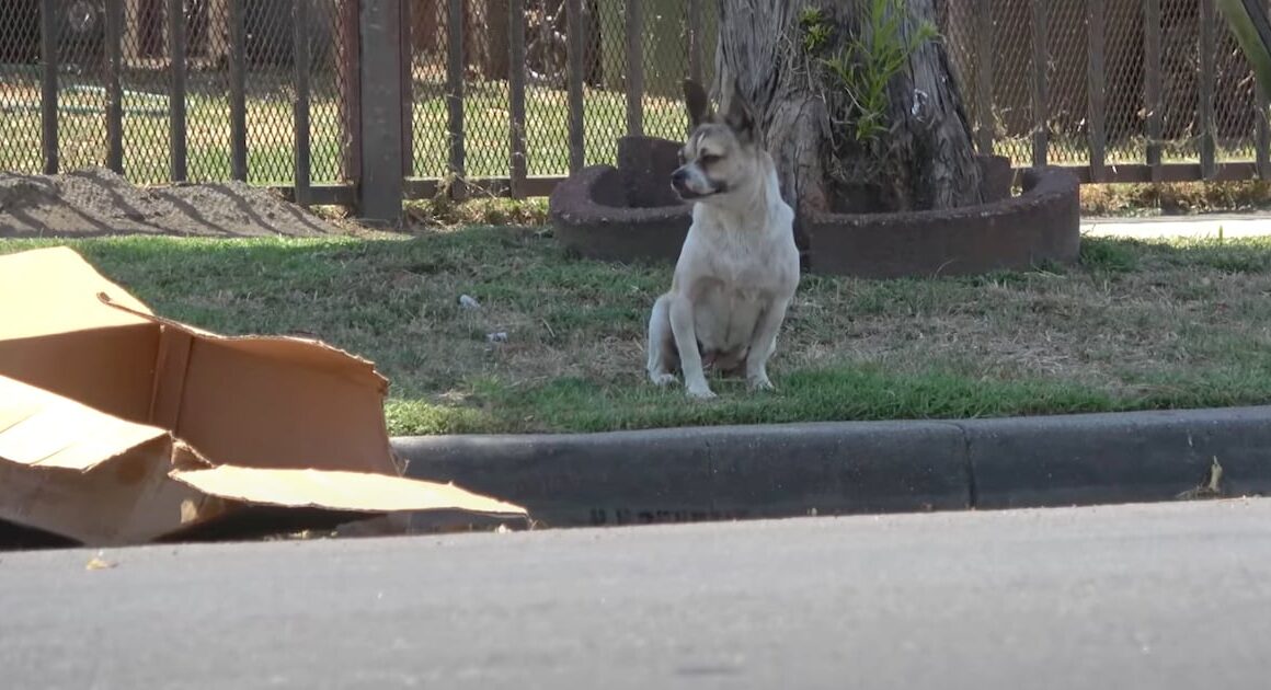 Hope For Paws received word of an abandoned dog on the street, so JoAnn and Katie set out for rescue. Upon arrival, they saw the Chihuahua sitting there beside a cardboard box. The poor girl had nothing and didn’t trust anyone β anyone who didn’t have food, that is. π