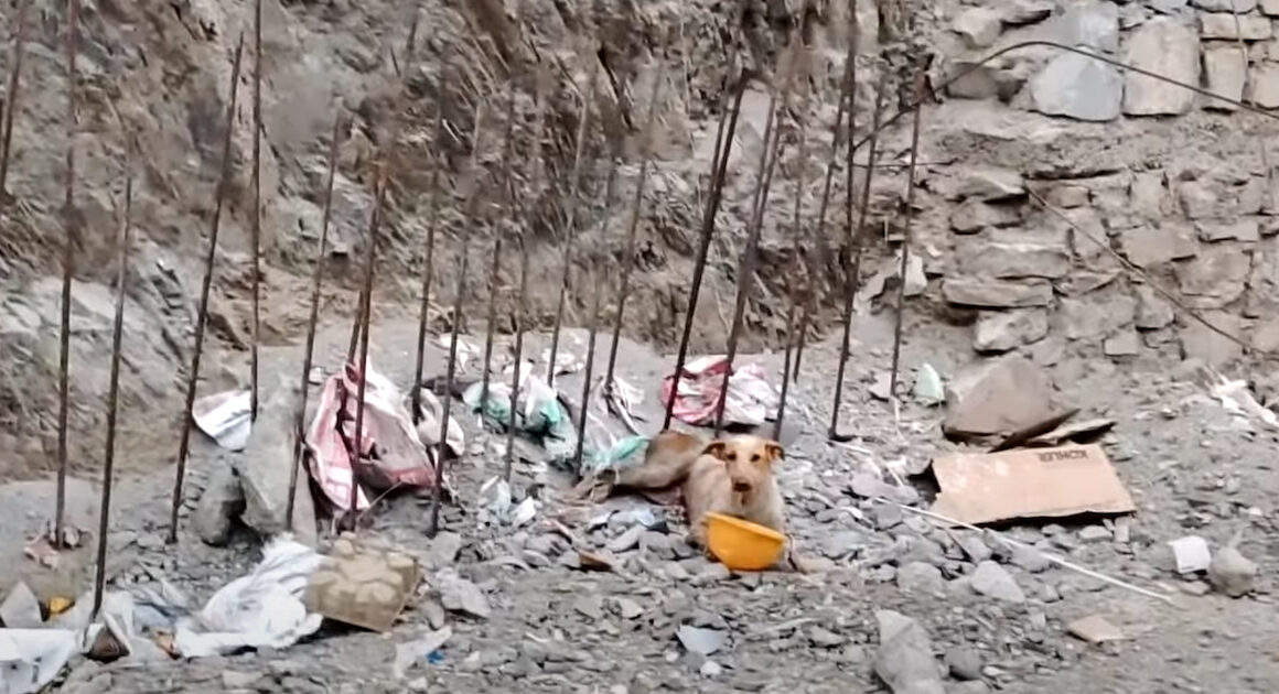 Neighbors spotted a dog lying by a rod at a construction site. When they got closer, they saw that the rod had pierced through her thigh and impaled her. She couldn’t get free no matter how much she tried. So they called Animal Aid Unlimited to the rescue, and they quickly arranged for workers to show up with an electric metal saw.