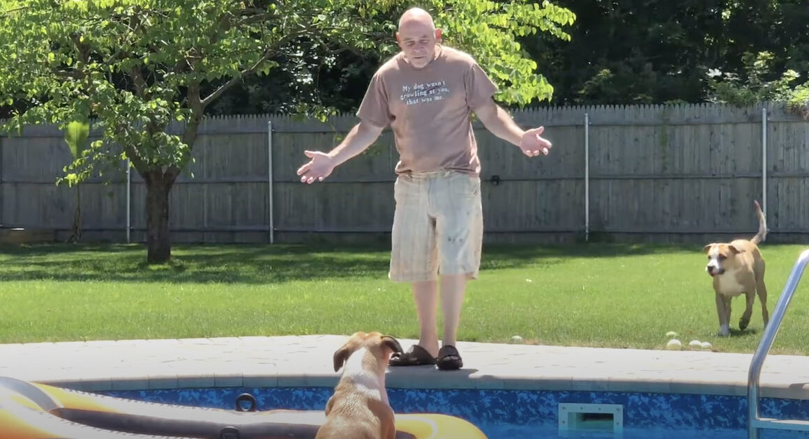 There’s nothing like an epic pool fail. And the one captured on camera here is quite the blunder! The dog jumps into the swimming pool onto his raft in a playful escape from his owner. That’s when Dad makes the decision to hop onto the floaty to show the dog that getting away isn’t so easy! π