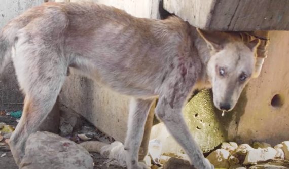 Grey was alone on the streets growing sicker by the minute. The locals said his family kicked him out at the first signs of illness and mange. The dog hung around their gate hoping they’d change their minds and bring him back in.