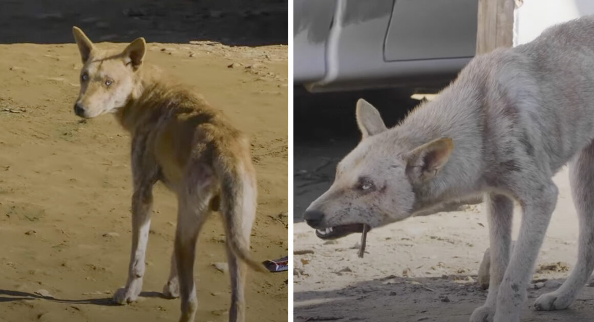 Grey was alone on the streets growing sicker by the minute. The locals said his family kicked him out at the first signs of illness and mange. The dog hung around their gate hoping they’d change their minds and bring him back in.