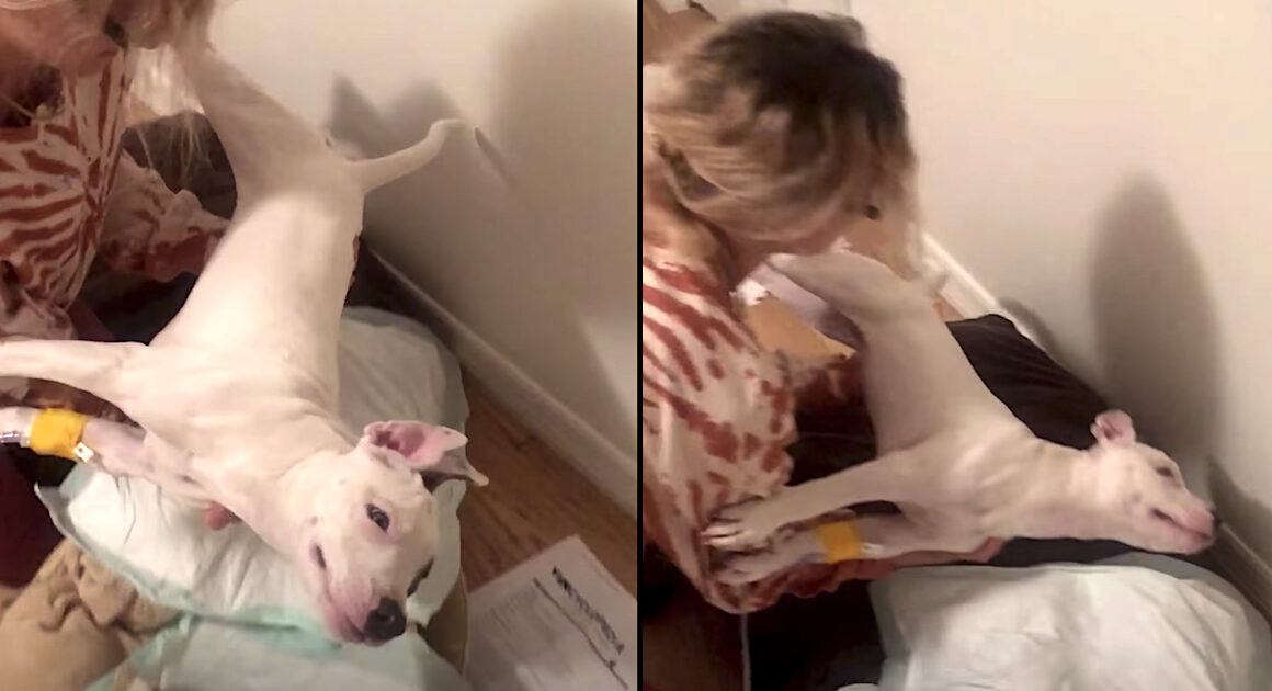 The poor dog was with it mentally and just trembled with fear. And right there, Ali decided she’d take Bunny home and try her best to help her pull through! The dog would need around-the-clock care, and the first night would be the hardest. But in the mornings to follow, the pittie started wagging her tail upon seeing Ali come into the room!