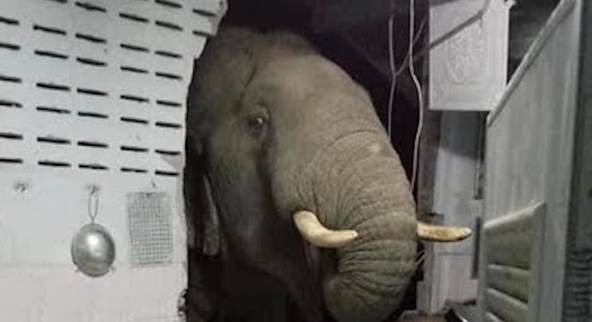 A hungry elephant came crashing through a kitchen wall looking for some snacks in the early hours one morning in southern Thailand. Ratchadawan Puengprasoppon woke up from all of the crashing and banging and wondered what was going on.
