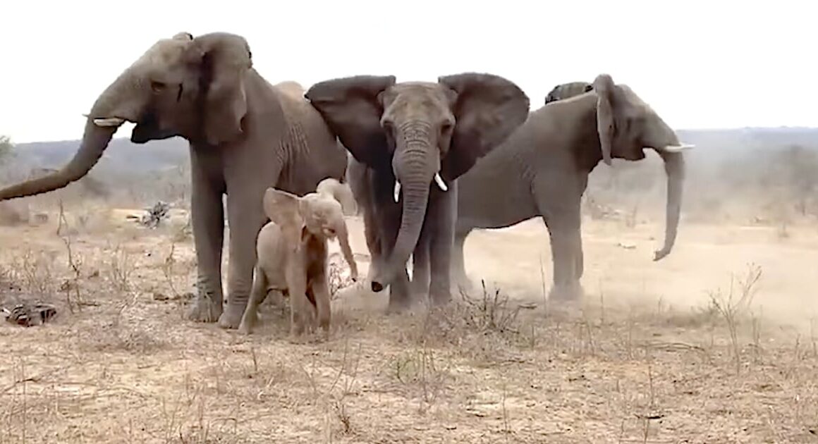 Elephants Sound The Trumpet To Welcome The Newest Member Of The Family