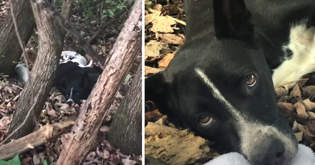 Angela and her friend were out on a walk one day when they came across something they never expected to see; Right there in the woods was a dog just lying on the ground surrounded by puppies. She had the most exhausted look on her face and seemed to welcome any kind of help.