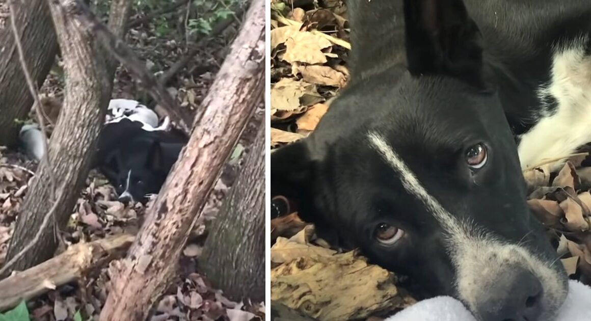 Angela and her friend were out on a walk one day when they came across something they never expected to see; Right there in the woods was a dog just lying on the ground surrounded by puppies. She had the most exhausted look on her face and seemed to welcome any kind of help.