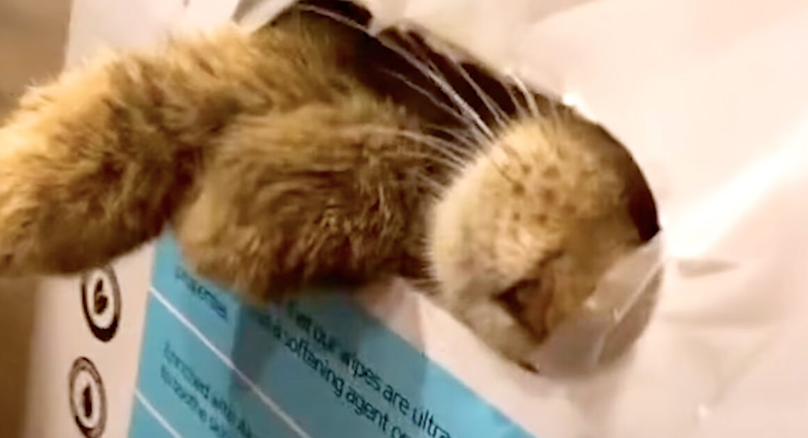 This family was out on a hill when they saw a taped-up box and heard meows coming from it. A cat peeked her head out through the handle opening to get some air, and they couldn’t believe someone could treat an animal this way. Liliana cut it open, and right away it felt like the cat was now part of their family…