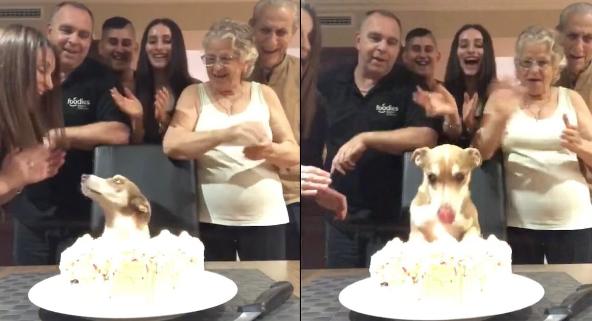 The happy pooch waits patiently as everyone sings “Happy Birthday” to him. And then, the dog even helps blow out the candles! Katie D’Souza posted a video of the moment to Facebook for all to see…