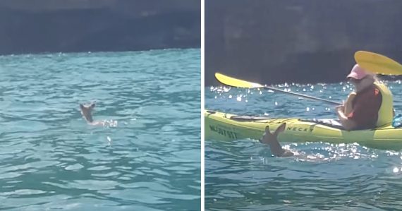 A little baby deer was seen struggling to stay afloat out in the water all alone, but thankfully there were some observant and selfless kayakers nearby! They’d have to do their best not to freak out the fawn any more than it already was making the rescue even tougher to pull off…
