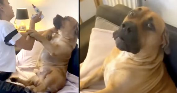 This gentle giant of a doggo gave it his all in a fight against his mama to not have his ears cleaned. But in the end, Mom would win, and it looked like the dog kind of enjoyed it after all! Does your dog fight anything it actually likes? Too funny! π
