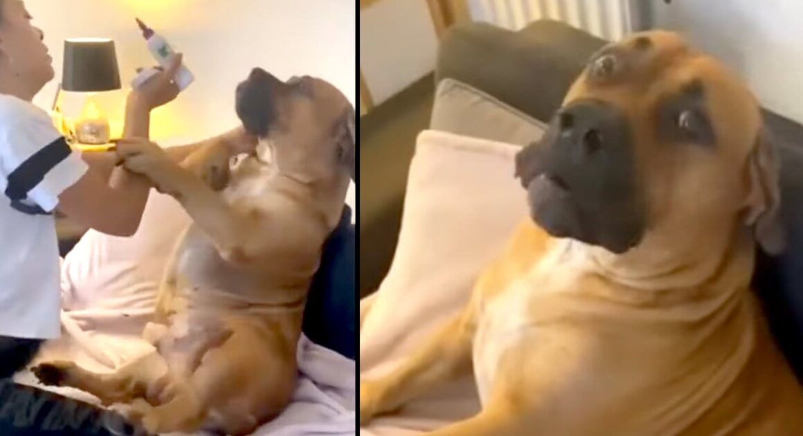 This gentle giant of a doggo gave it his all in a fight against his mama to not have his ears cleaned. But in the end, Mom would win, and it looked like the dog kind of enjoyed it after all! Does your dog fight anything it actually likes? Too funny! π