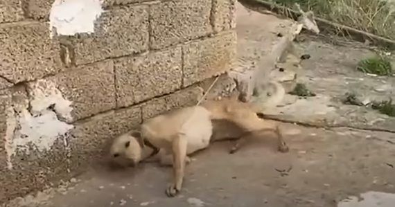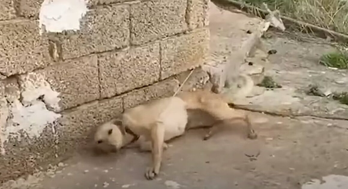 Takis approached a dog chained to a wall, and he was so sad to see the condition she was in. With nowhere to go and nothing to eat, she was skin and bones. But that didn’t stop her from wagging her tail upon seeing him! The friendly pup just wanted to feel loved.