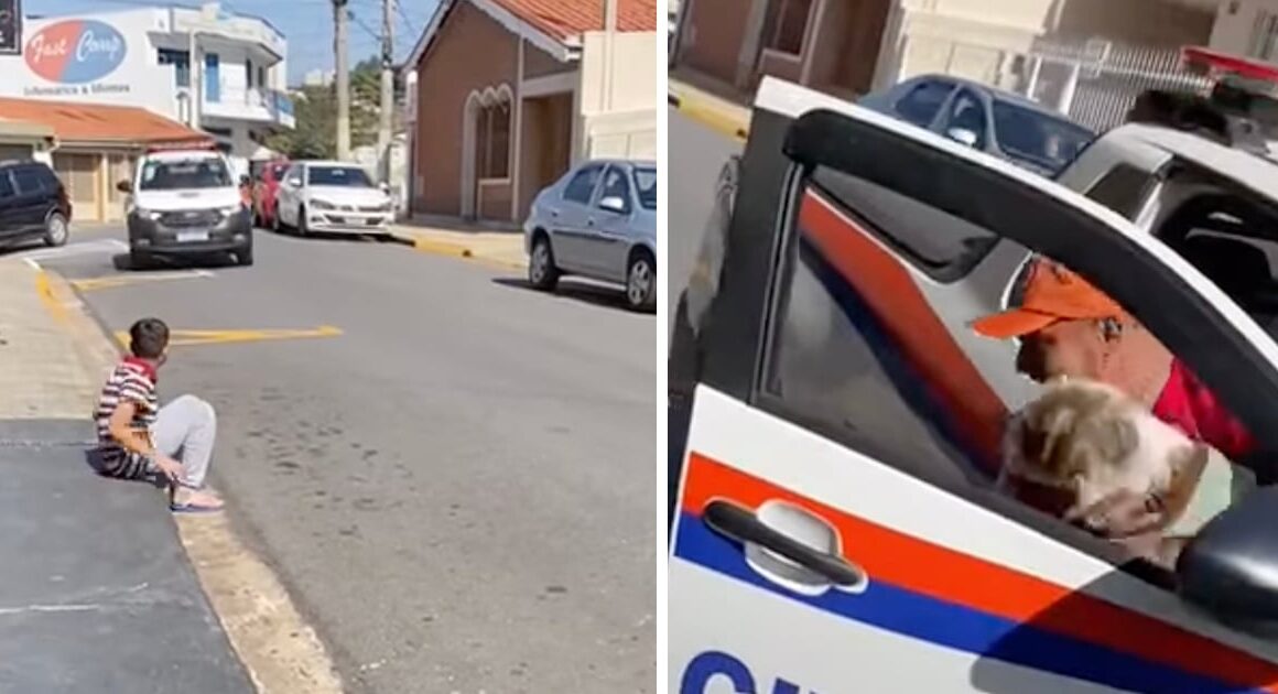 As the kid sat depressed on the curb, the vehicle containing his dog pulled up alongside him. Leandro had no idea! His reaction is the best, and it’s great to know that these two are back together as they should be. π