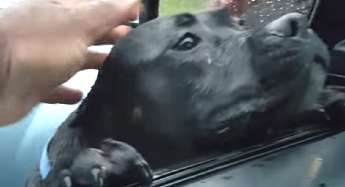 That was the dog’s cue let himself in! As the pit started climbing in through the window, the man and his passenger panic as they are taken by complete surprise. They didn’t expect that at all!