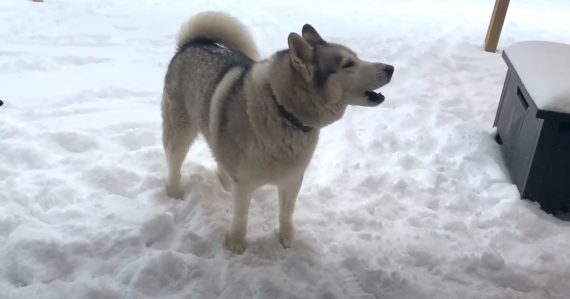 Malakai the 5-year-old Husky got a taste of what it’s like to be outside in this white fluffy stuff. And let’s just say, the dog seemed pretty happy! She was told repeatedly to come back inside after having some fun, but the silly pup simply refused!