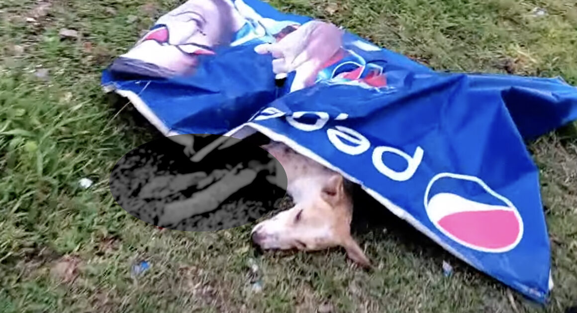 Neighbors found a street dog covered in blood unable to move. They contacted Animal Aid Unlimited who arrived on scene to find her covered with a Pepsi advertisement poster. This brave girl somehow survived being hit by a car and made her away out of the road…