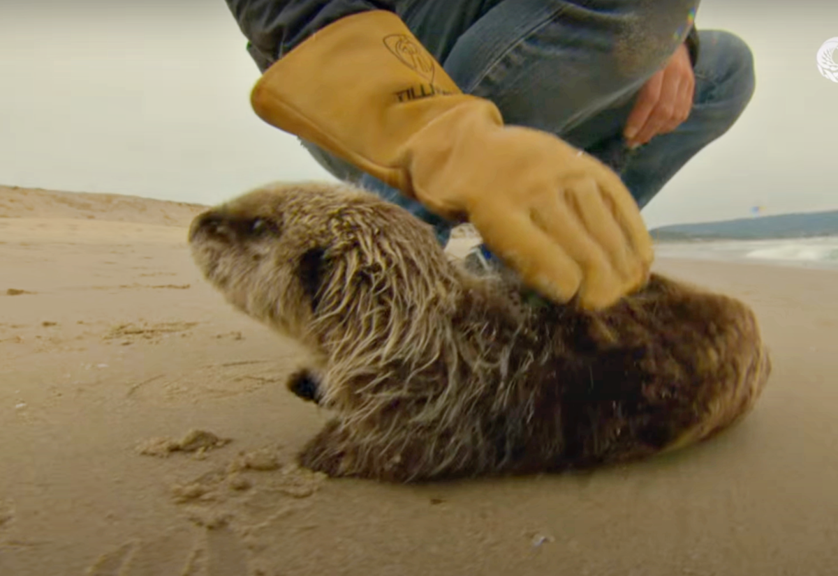 He also knew how to handle the baby otter so he carefully picked her up and walked with her, up and down the beach, hoping to find her mom. He was encouraged that the baby otter’s cries would lure her mother out. But there was no other otter around. This was likely due to the large swells brought in by the weather. She was likely separated by her mom, for good. The man had no other choice but to bring the baby otter to the aquarium.