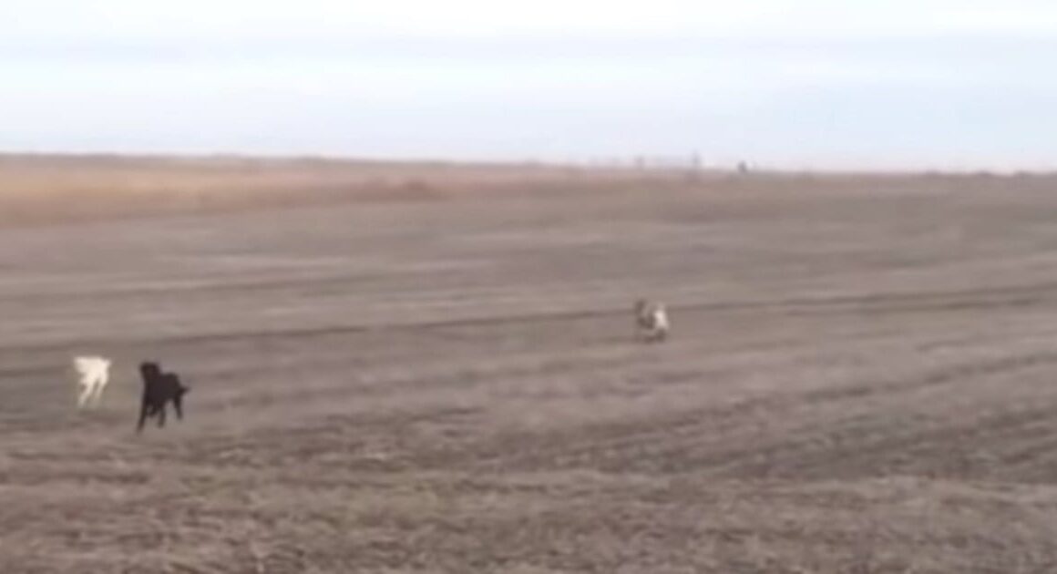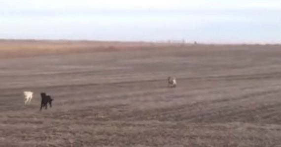 Bo the black Lab ran away from home, so his owner set out in search of him. And when Kyle Krier saw his dog coming in the distance in a huge field, he spotted two other “dots” running alongside Bo. It turned out the black Lab had made some friends in the short time he was gone. 😀