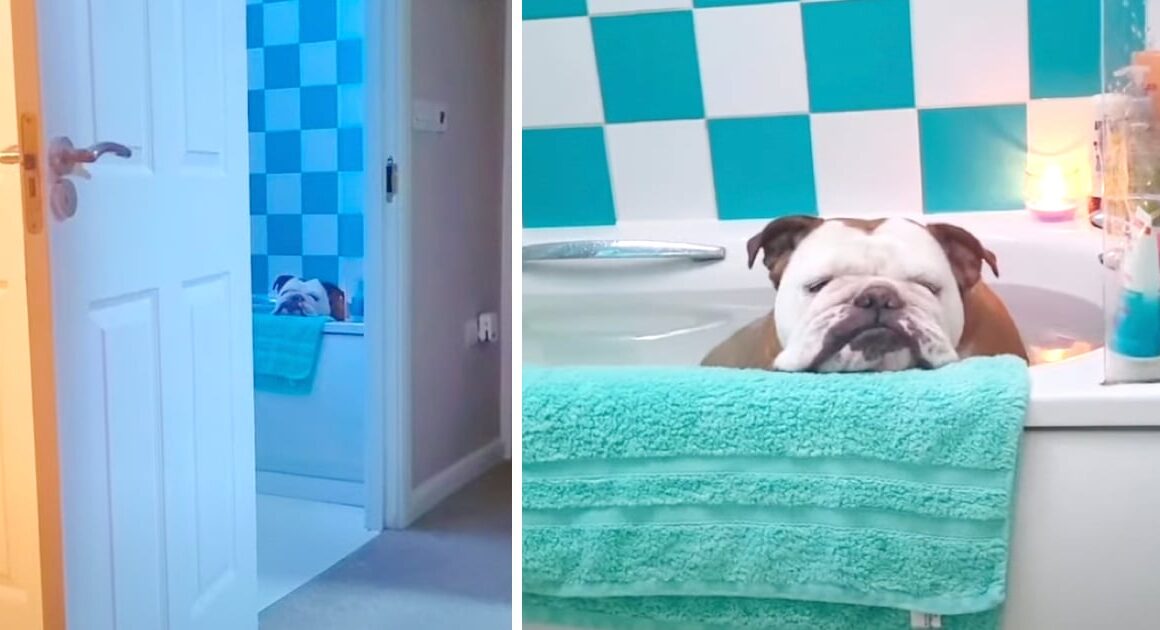 That face says it all, doesn’t it? The dog chills with her head slumped over the side of the candle lit bath as she enjoys the soak. Have you ever seen anything like it? π