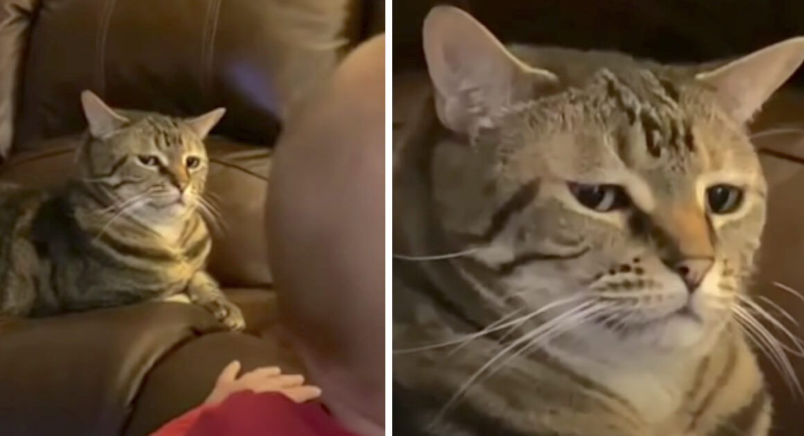 We often wonder what our pets think of the new person in the house, but this is one cat who doesn’t hide his feelings about the baby!