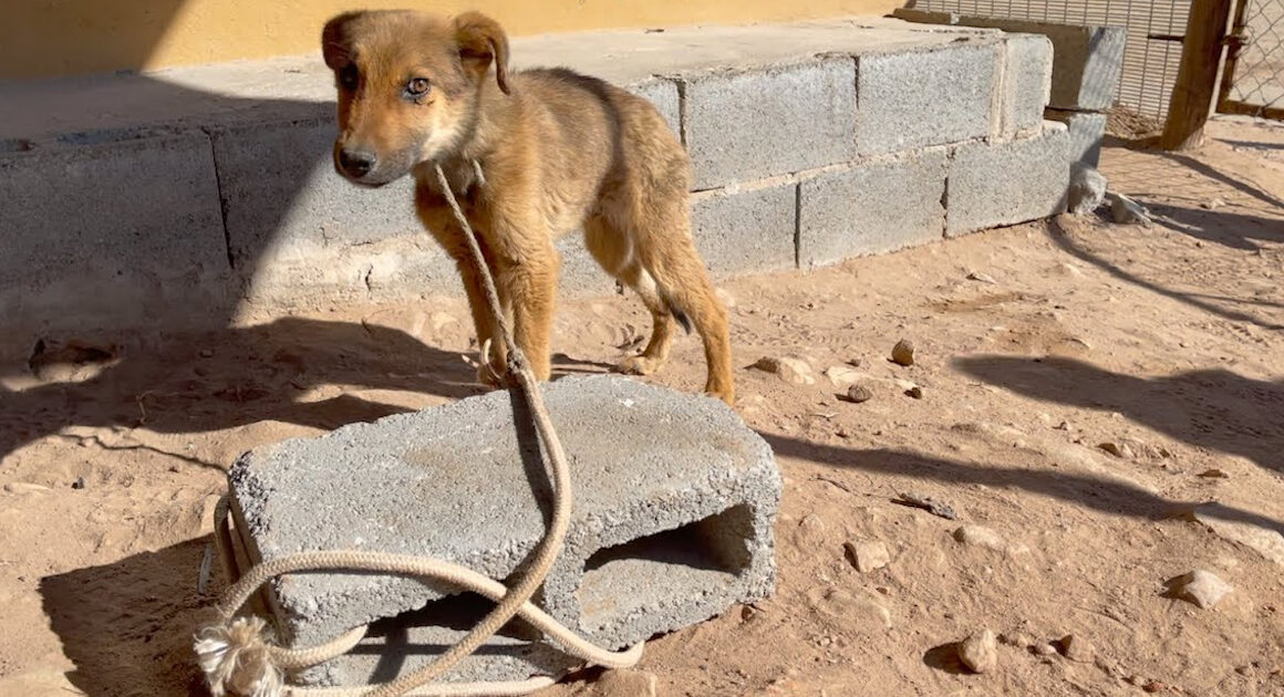 Sidewalk Specials was on a vaccine drive when they came across a little pup named Toby. His owners complained that he was too skinny and that he would run away if not tethered to his rope. So they kept the 6-month-old dog tied to a breeze block year-round out in the elements…