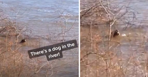 A man was out and about when he saw something he never could’ve expected, but he was in the right place at the right time to save a dog’s life. Right there in the cold river was a pup struggling to stay afloat, so the man tried luring the dog over to a spot where he could grab him.