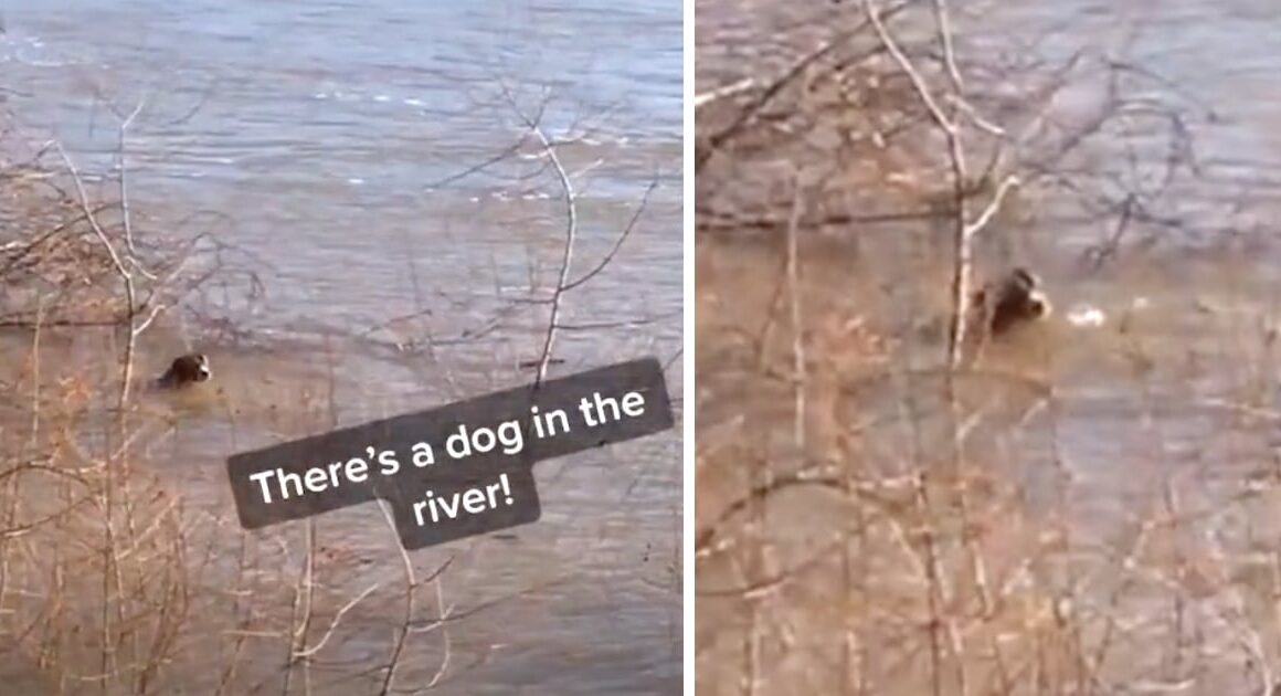 A man was out and about when he saw something he never could’ve expected, but he was in the right place at the right time to save a dog’s life. Right there in the cold river was a pup struggling to stay afloat, so the man tried luring the dog over to a spot where he could grab him.