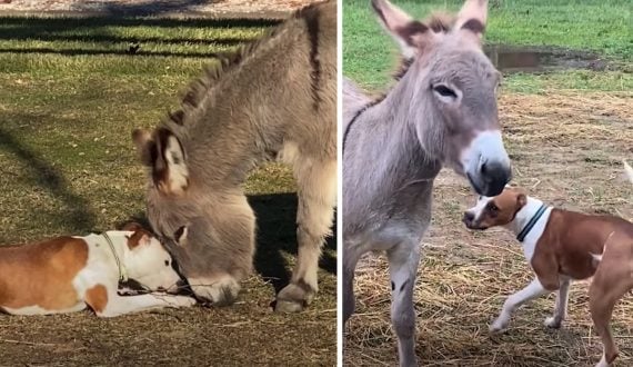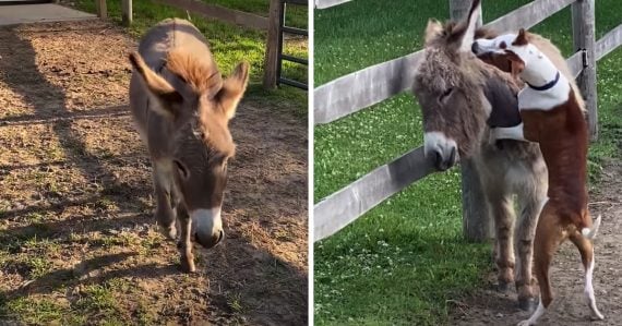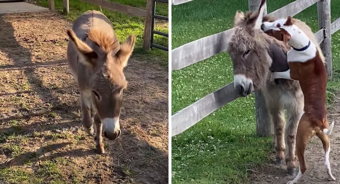 Shy Donkey Who ‘Doesn’t Like People Or Dogs’ Meets Pit Bull Who Changes It All