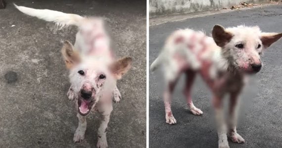 A street dog with the worst skin condition was so friendly and approachable, it’s as if she’d definitely had some human contact in her life before. This allowed Charlotte of Mission Paws’ible to get close, but she had no rescue supplies with her. So she left and came back, but the pup was gone.