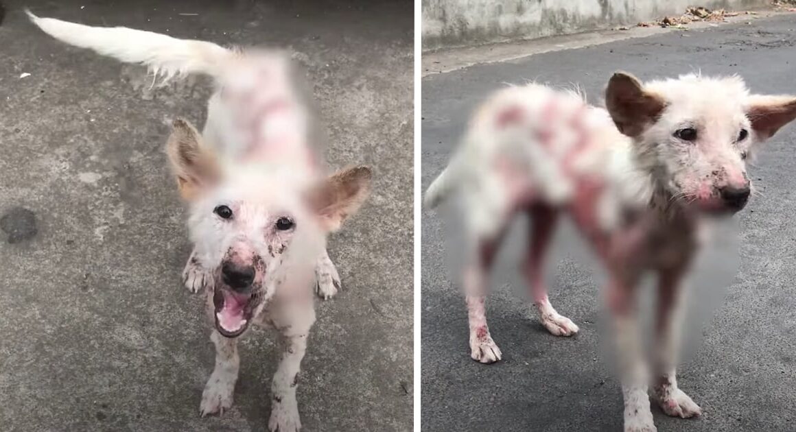 A street dog with the worst skin condition was so friendly and approachable, it’s as if she’d definitely had some human contact in her life before. This allowed Charlotte of Mission Paws’ible to get close, but she had no rescue supplies with her. So she left and came back, but the pup was gone.