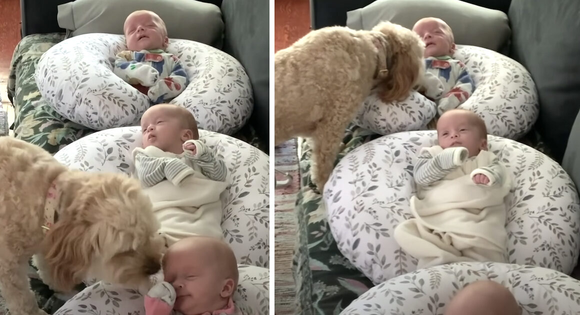 Is there anything more adorable than the interactions between a dog and a child? What if it were triplets instead? Well, you don’t have to imagine much longer, because in the video below we have a sweet pup who checks in on her two-month-old human siblings!