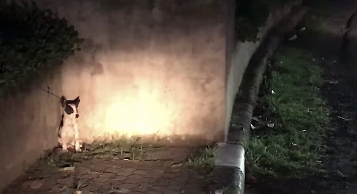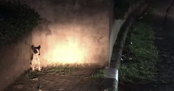 A three-month-old puppy sat trembling beside traffic after her owners threw her out of the car in a bag. They wanted her to go over the bridge down into the ravine, but she hit the guardrail and worked her way out of the bag. The poor thing scattered across the road to the corner.