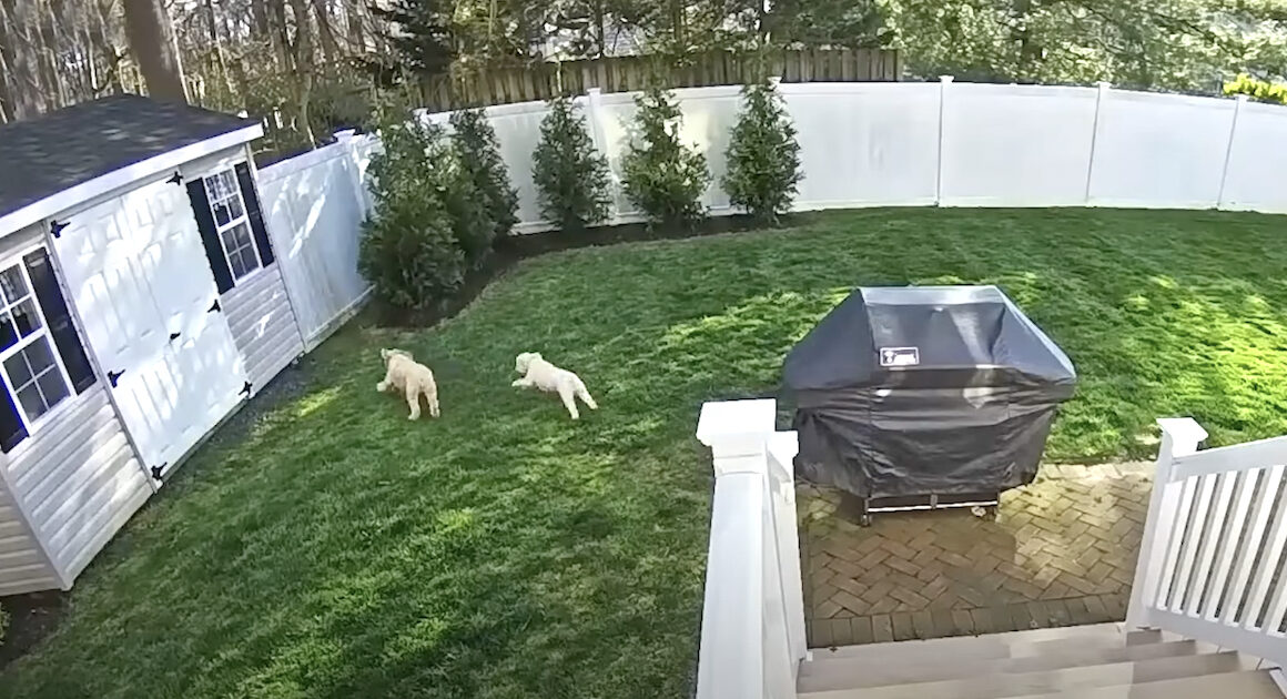 As caught from one family’s Ring outdoor camera, this video shows why two dogs are always better than one! Watch as the best pals run around and play in the backyard without a care in the world. They’ll help keep each other busy and entertained and healthy for years to come!