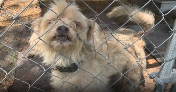 PETA rescued a severely matted dog from a depressing backyard pen, and she was so happy to get her first haircut! Winnie, a 15-pound poodle/lhasa apso mix, saw her tiny body become totally covered in mats after she was relegated to a cramped pen in a North Carolina backyard.