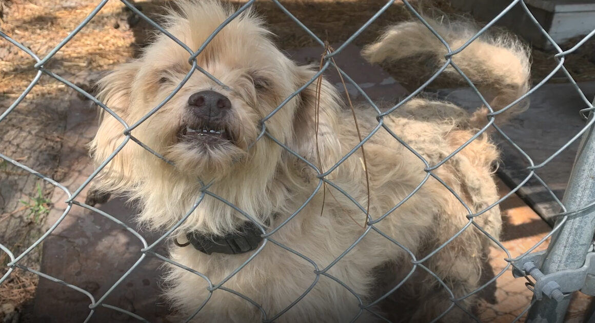 PETA rescued a severely matted dog from a depressing backyard pen, and she was so happy to get her first haircut! Winnie, a 15-pound poodle/lhasa apso mix, saw her tiny body become totally covered in mats after she was relegated to a cramped pen in a North Carolina backyard.