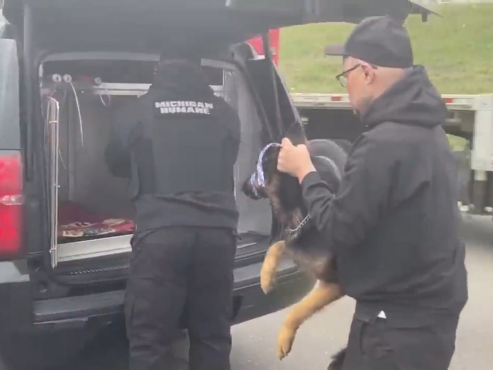 Soon, Michigan Humane arrived to pick up the dog. They named him Marco, but found that he was not microchipped, and no one has come forward to claim him yet. Their suspicion is that he escaped his yard and ran onto the freeway and couldn’t find his way back. Marco has been kept under medical observation. Debbie is being hailed as a hero, but according to her she’s just a human being who feels God put her in that place to help Marco.