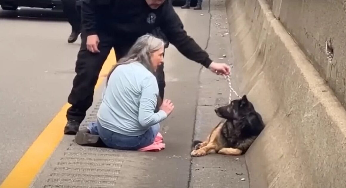 “I saw a dog in the middle of the road and it was obviously limping so I knew it had been hit,” Debbie told WXYZ. When the dog got near a center divider and sat down for a moment to catch his breath, Debbie sat down beside him to try and reassure him that everything was going to be okay.