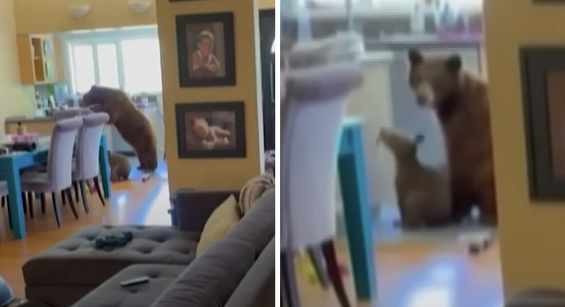 Homeowner Alicia Taylor left the front window open to get some fresh air, and that was the only invitation needed for a mama bear and her cub to come inside. The bears raided the pantry and took interest in the donuts and some other treats…