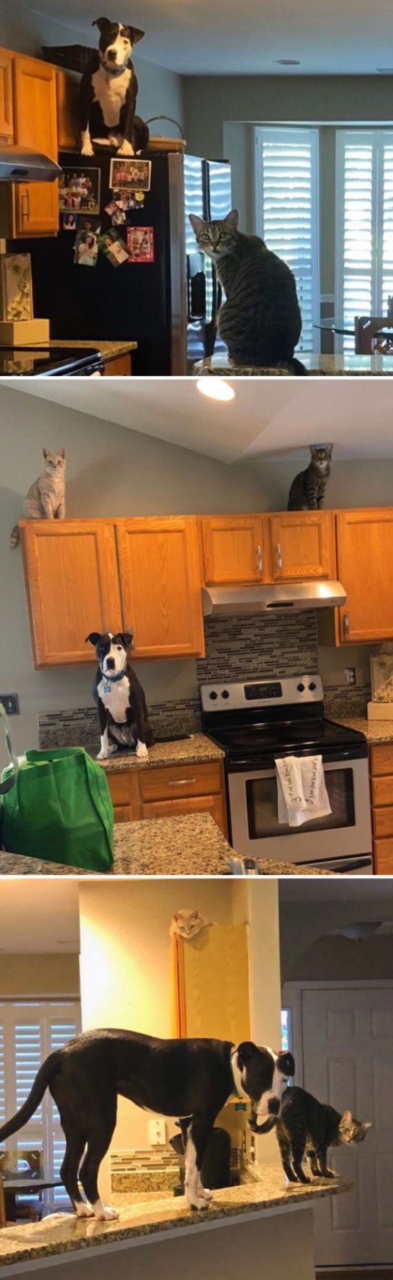 Sometimes dogs forget how to dog. Or maybe they’d just rather live the life of a cat? Either way, I think these good boys have been hanging around their feline friends for far too long! ๐