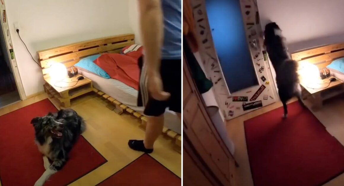The man sets up a camera and leaves the room to see show what his dog does. And Morty the Australian Shepherd starts his bedtime routine! Right away, the dog closes the door followed by turning out the lights. And then it’s onto the bed where the good boy grabs ahold of his blanket and rolls to be tucked in. It’s no crying or destroying things for this dog but rather a nice opportunity to take a nap! πŸ™‚