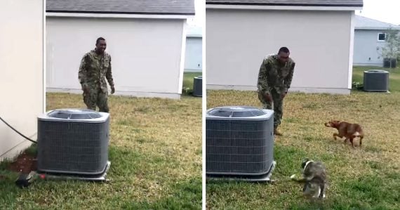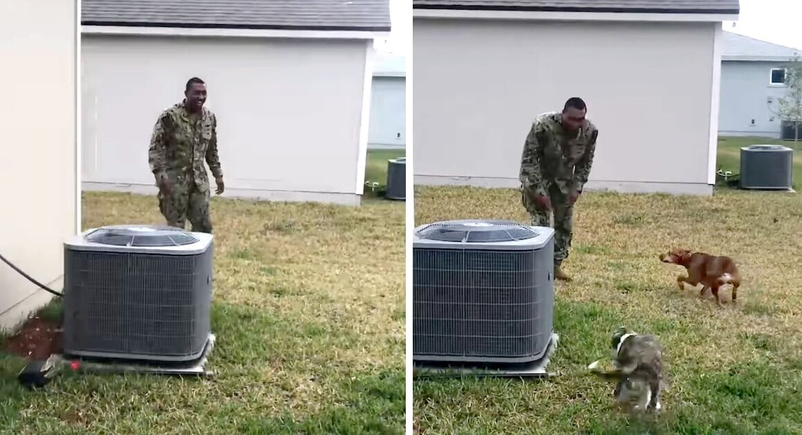Dad Walks Around The Corner After 3 Month Deployment & The Dogs Are Taken Aback