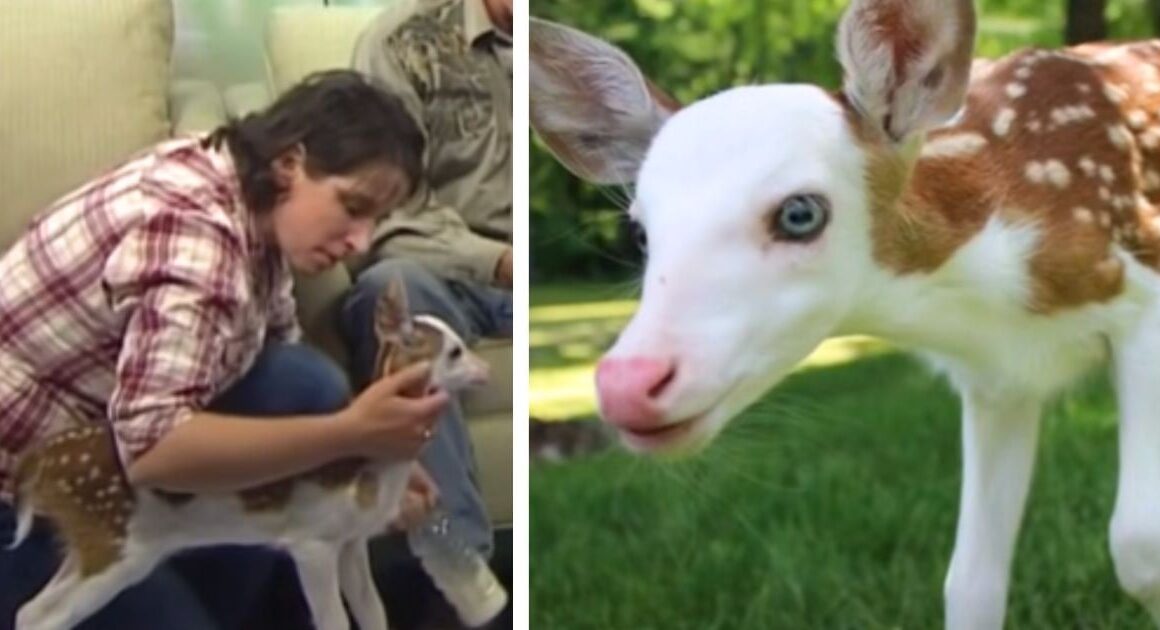 While humans place great value on a person’s uniqueness, being born unique and different in the animal kingdom usually comes with a hefty price. A young fawn found this out the hard way when his mother abandoned him at birth for being born with a condition that made most of his fur appear white instead of the usual dark brown color.
