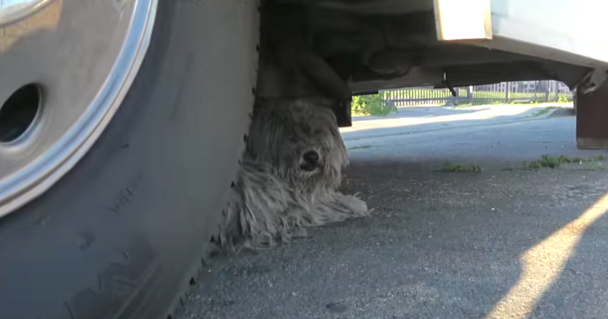 Hope For Paws received a call about two homeless dogs taking refuge under an RV along the side of the road. By the time they arrived, someone had taken one of the dogs and left. But the other still very much needed help, and rescuers had to quickly and safely get her away from the crazy traffic.