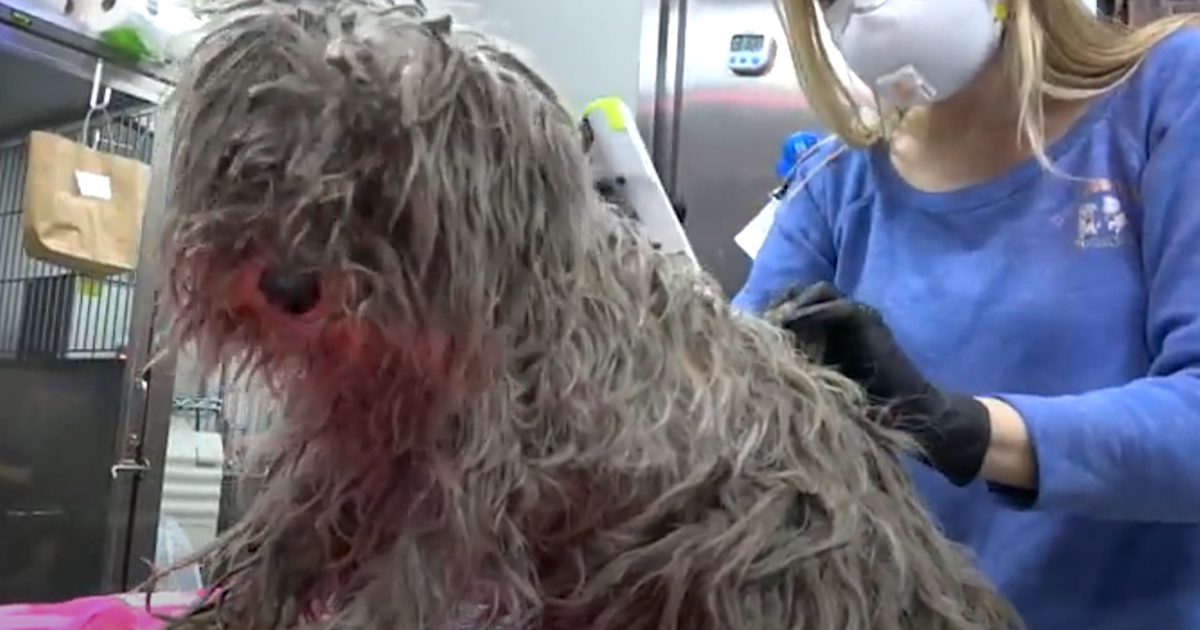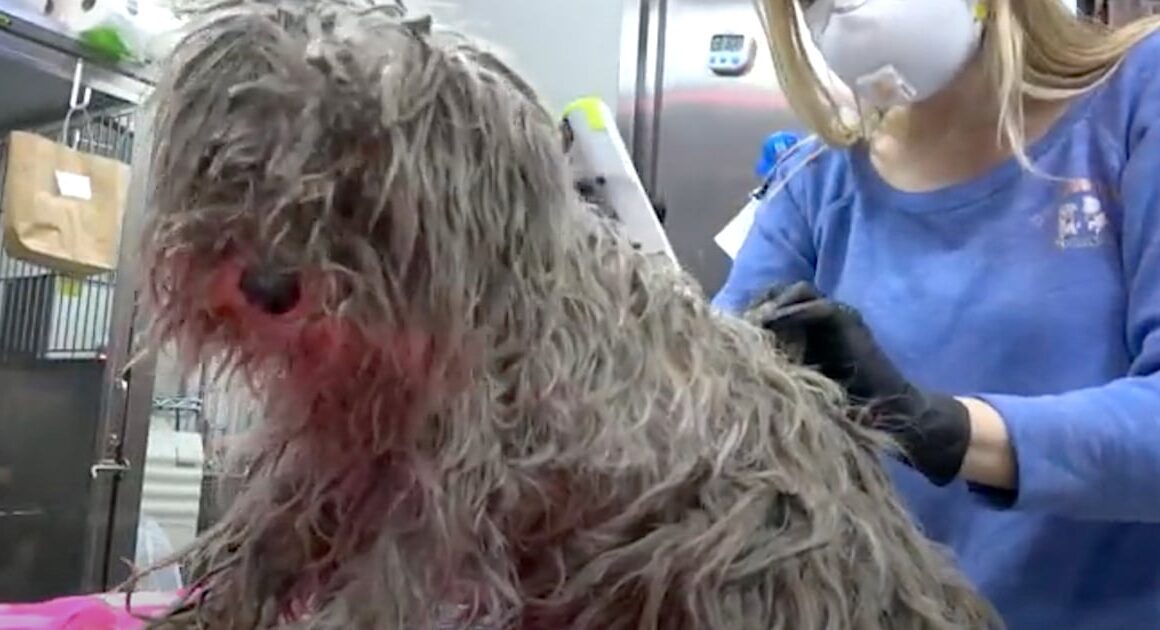 The dog didn’t have a microchip, and the next hour was spent shaving and cleaning her up. After a bath, she looked so much different β look at that snow-white fur! Little Hayley went on to her foster with Foxy and the Hounds after a few days at the hospital to receive medical care.
