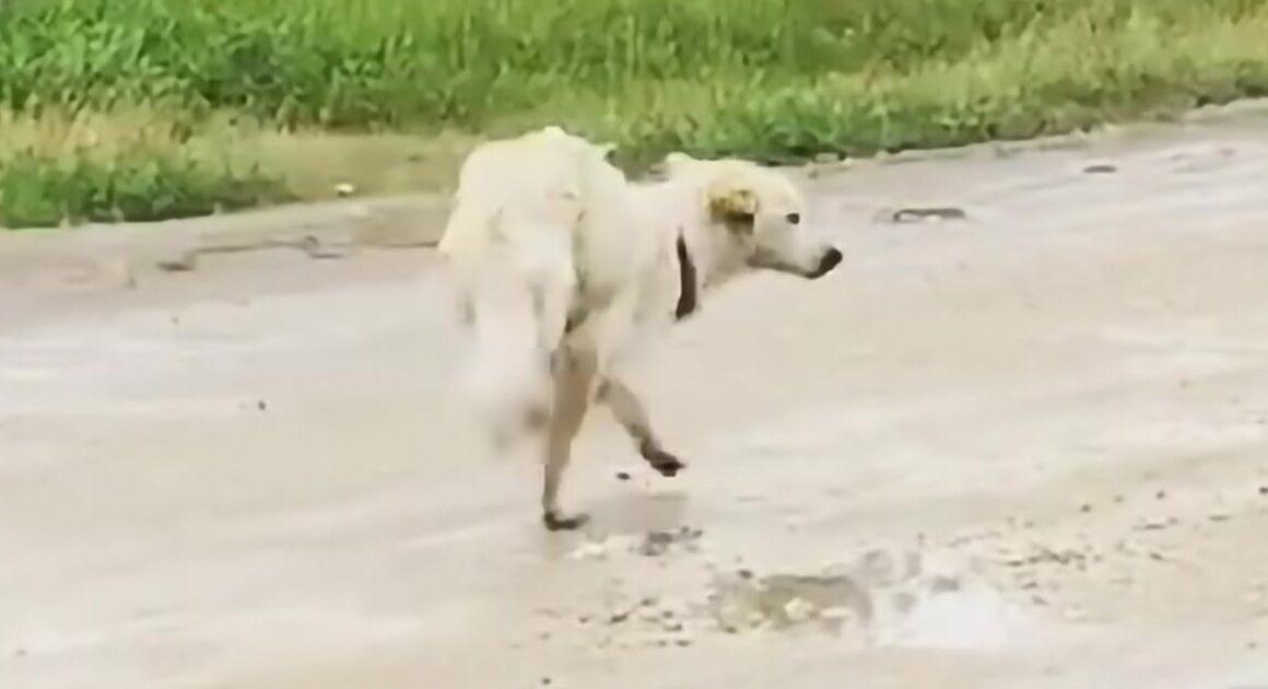 Dog Abandoned On The Street Has To Walk On Her Front Legs To Fend For Herself