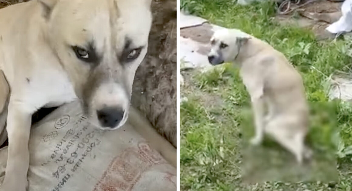 Dog Found Lying Around For A Week Gets Up Only To Drag His Body Along