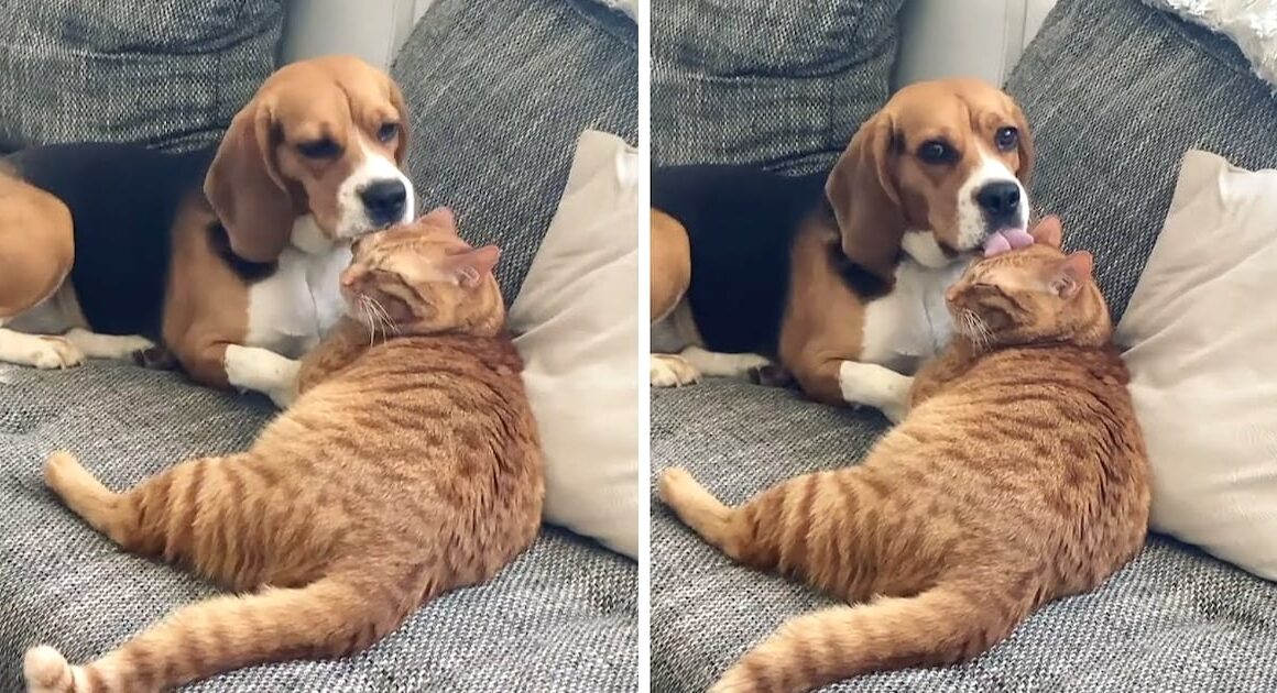 Contrary to popular belief, dogs and cats aren’t enemies. In fact, they can be the best of friends! It’s just that our dogs may not want us to know that and try to hide it as well as possible. Check this out in the video below…