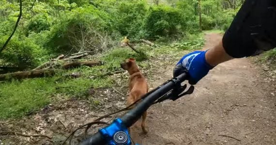 Chris Garrison was on a mountain bike ride with his dog, Amaretto, when the good girl all of a sudden stopped on the trail. The pup heard meowing coming from a tree nearby which led her dad to go investigate. And that’s when he saw it…