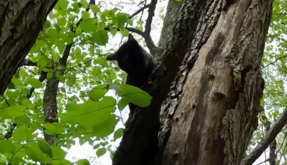 Clinging high up in the tree was a little cat. It started purring when the good Samaritan picked it up leading him to believe it had been dumped there on purpose. With no one and nothing around for miles, he took the cat back to the Licking County Humane Society.