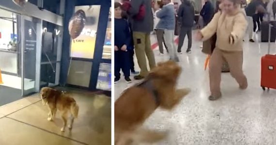 Alexandra Owens had just traveled across the globe. And the one thing to make it all worth it was seeing her Golden Retriever, Hugo, once again. Hugo waited excitedly outside of the airport knowing something was about to happen. And then he was let inside for the special reunion!